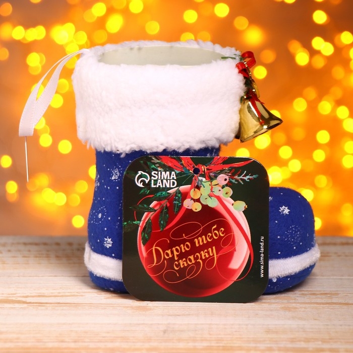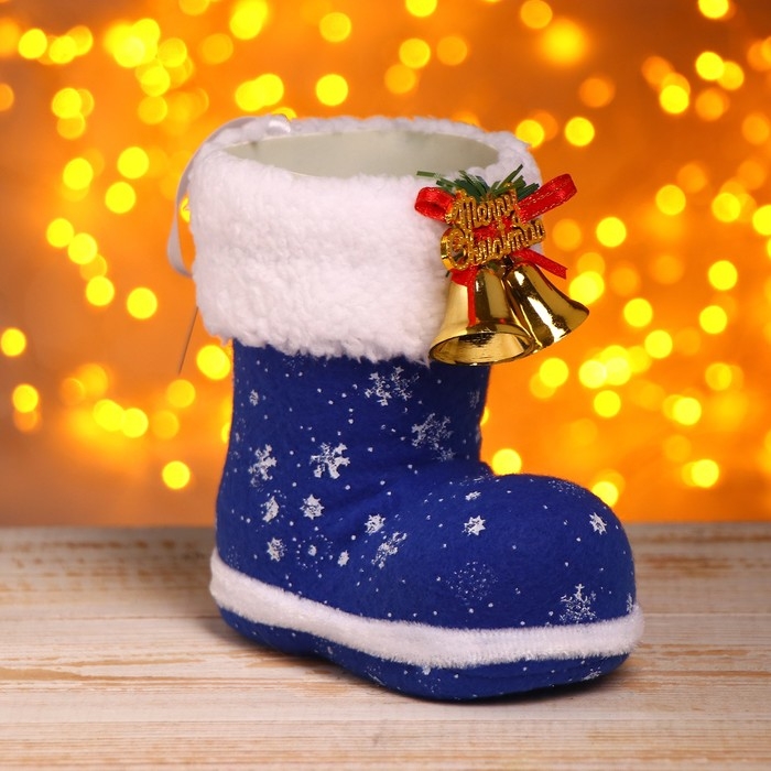 Подарочная упаковка «Сапожок», цвет синий, с колокольчиками