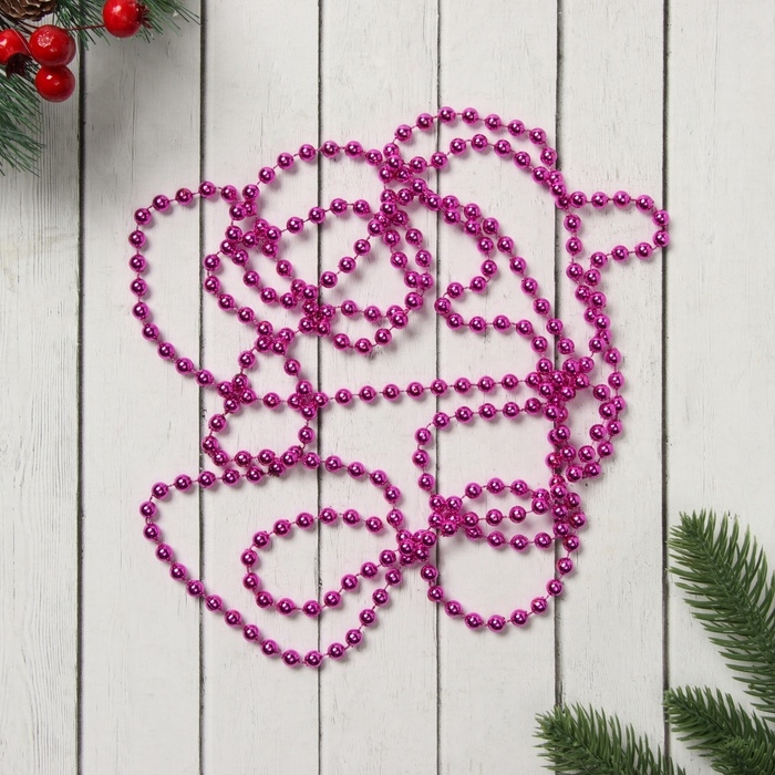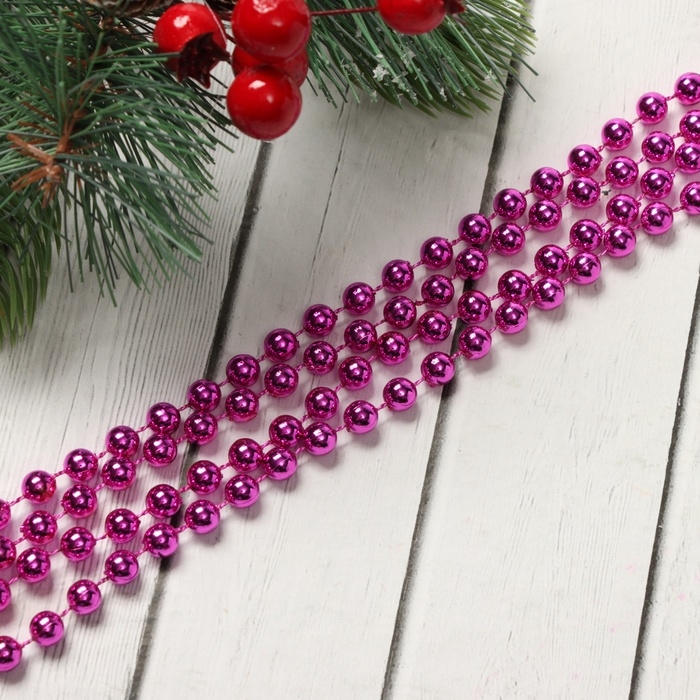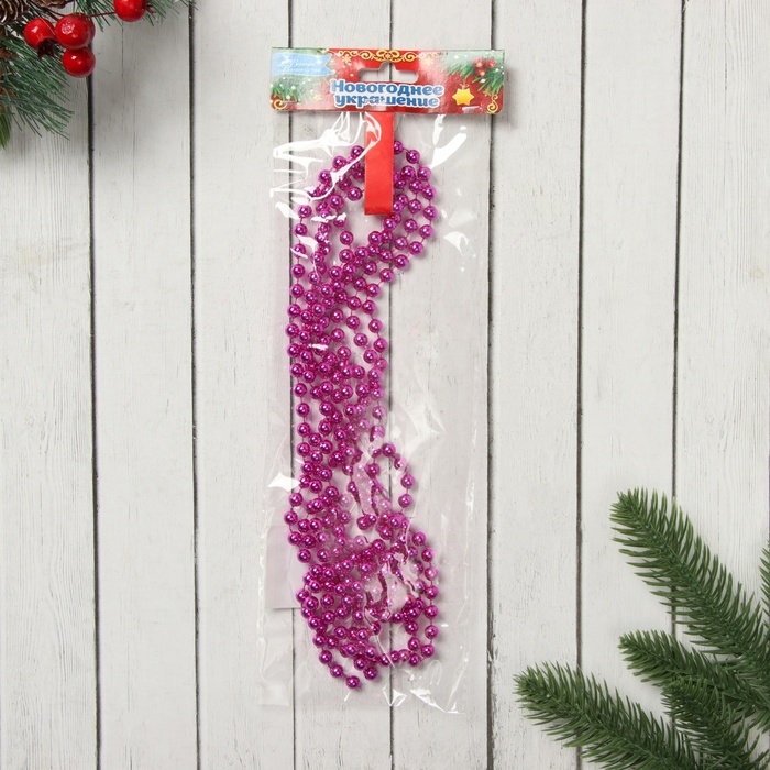 Бусы на ёлку 2,7 м d-7 мм "Шарики" малиновый