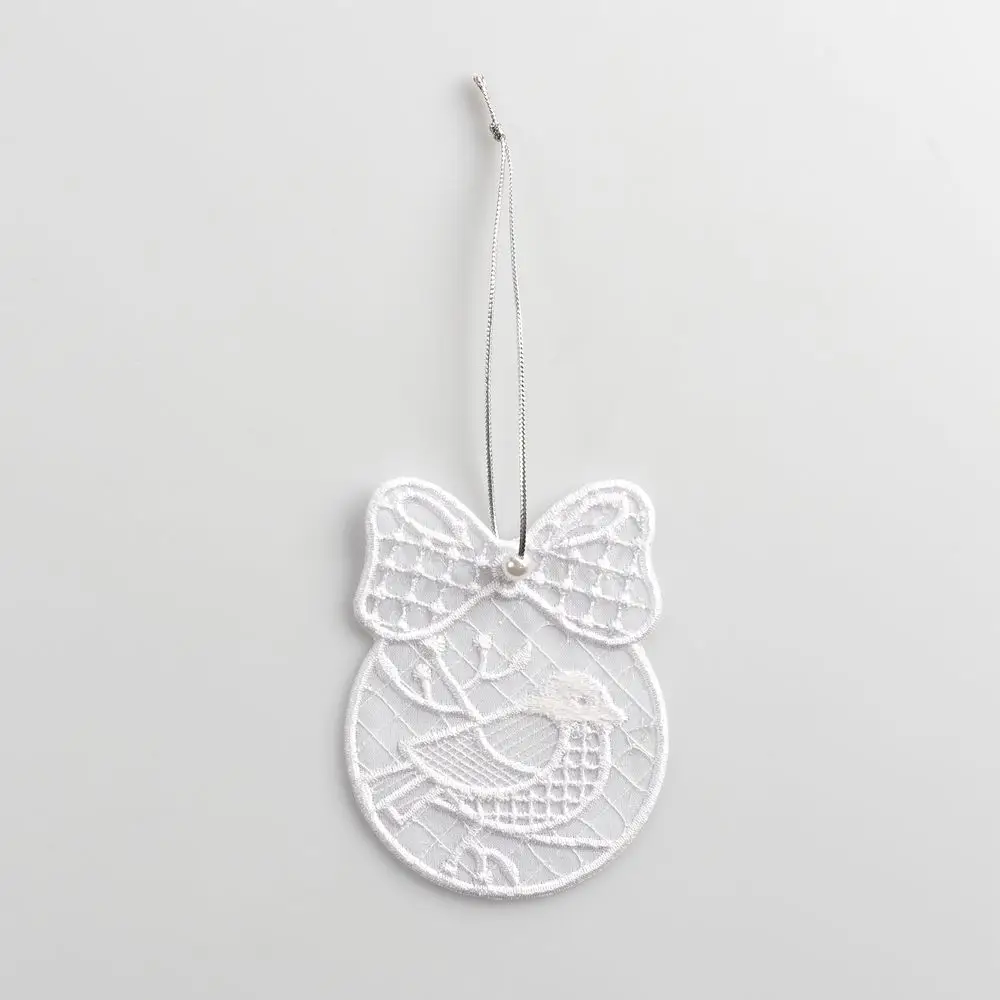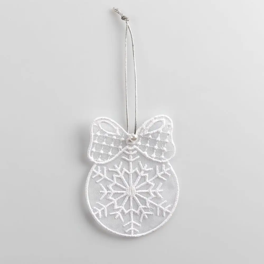 Нежные, как первый снег, и полупрозрачные, как морозное дыхание, — украшения из шифона подарят ощущение настоящего новогоднего чуда. Филигранная вышивка поражает своей почти невесомой легкостью, а серебристые нити и белоснежная бусинка элегантно дополняют весь ансамбль — каждая деталь этих подвесок передает радость и волшебство зимы.