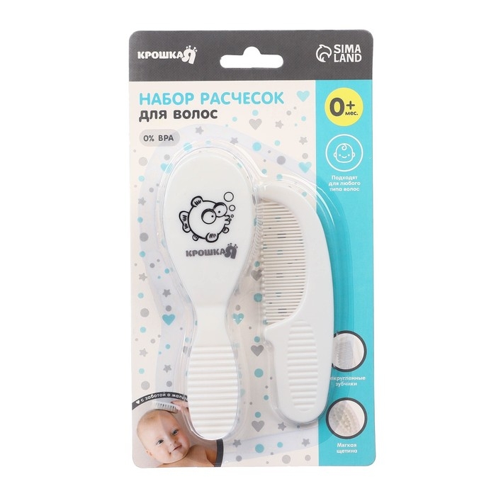 Расческа-щетка с мягкой щетиной и удобная расческа с закругленными зубчиками предназначены для малышей с первых дней жизни.