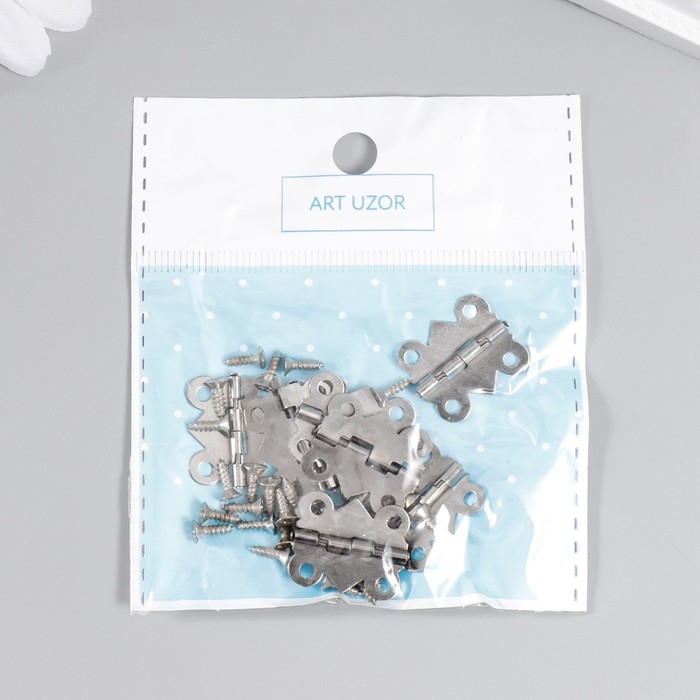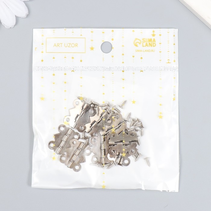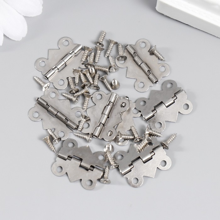 Петля для шкатулки металл фигурная серебро набор 8 шт 2х2,1 см
