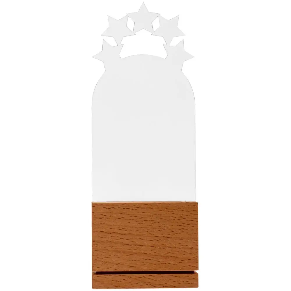 Стела New Tribute — это массивное основание из бука с гладкой фактурой и тонкая прозрачная вставка из акрила. Идеальный баланс устойчивости и легкости важен не только для создания награды привлекательной формы, но и для достижения результата, который этой наградой будет отмечен.