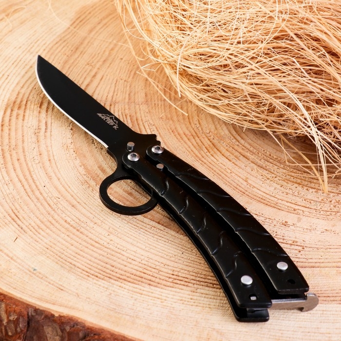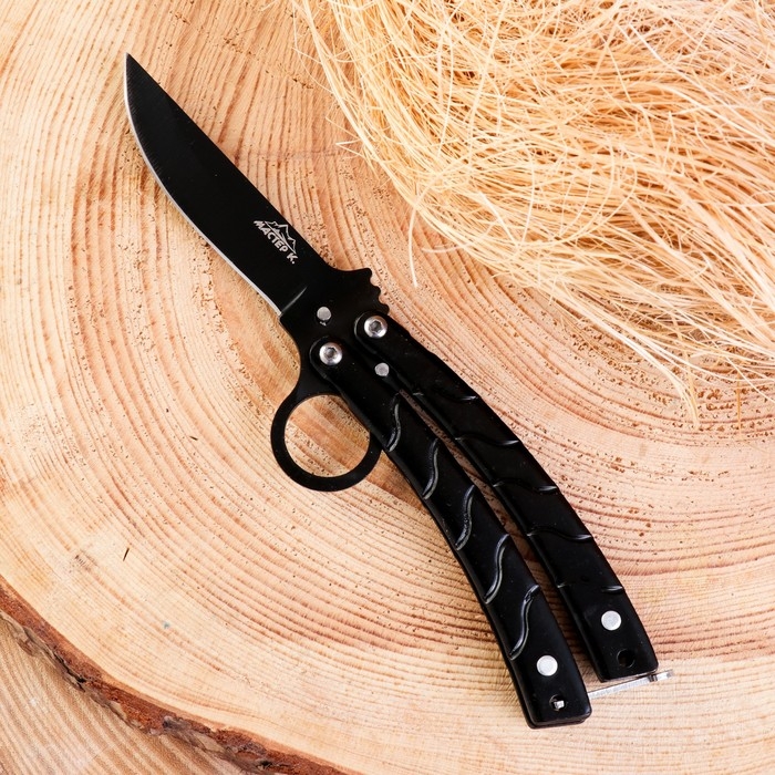 Нож-бабочка «Калиго» Мастер К, лезвие с прямым обухом 7 см, рукоять с волнами 9 см
