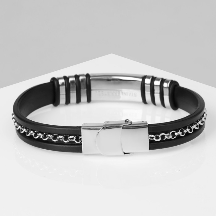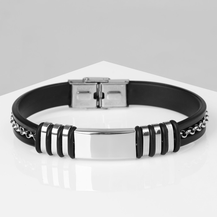 Браслет унисекс «Стиль» прямоугольник с цепочкой, цвет чёрный с серебром, 23 см