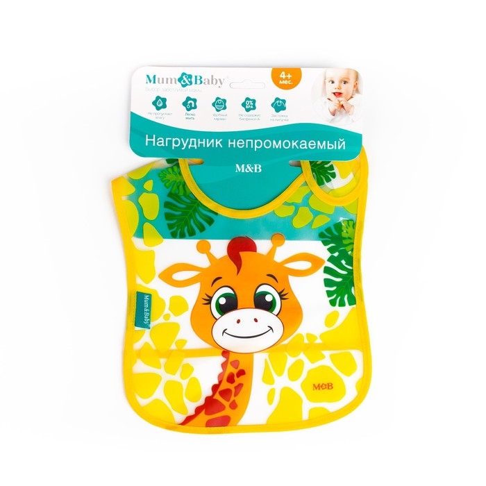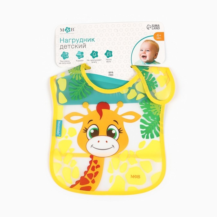 Нагрудник для кормления «Жирафик Лило» непромокаемый на липучке, с карманом