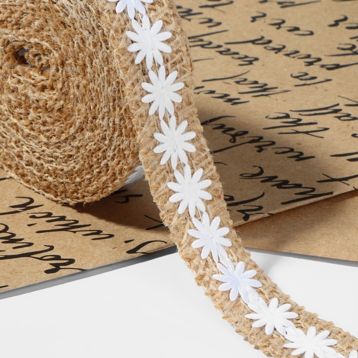 Лента из джута «Ромашки», натуральная, 20 мм, 4,5 ± 0,5 м, цвет белый