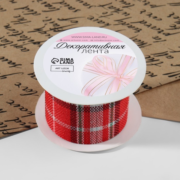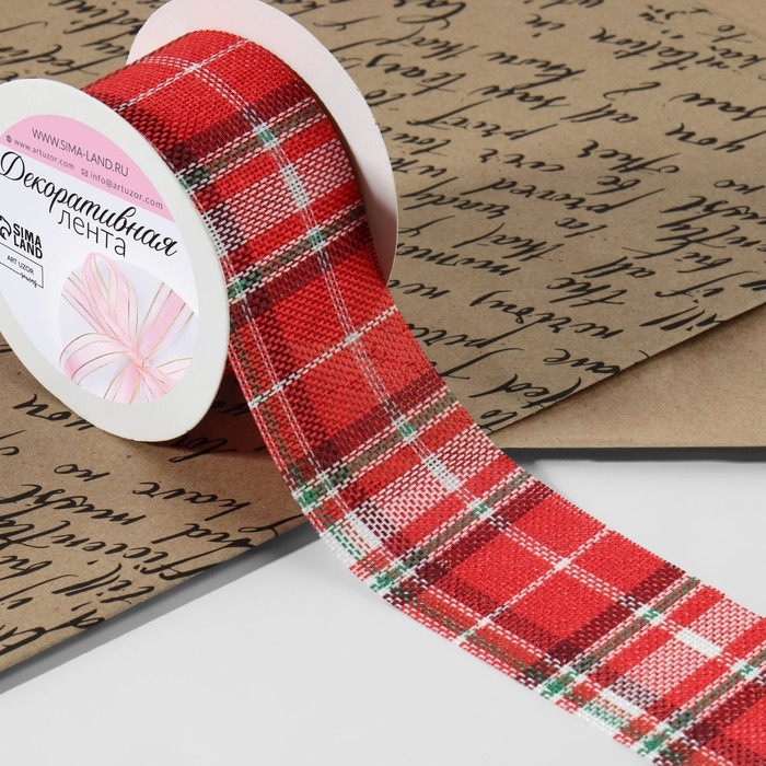 Лента из джута «Клетка», 50 мм, 4,5 ± 0,5 м, цвет красный/белый