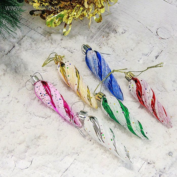 Украшение ёлочное "Сосулька - серпантин" (набор 6 шт) 8х2,5 см