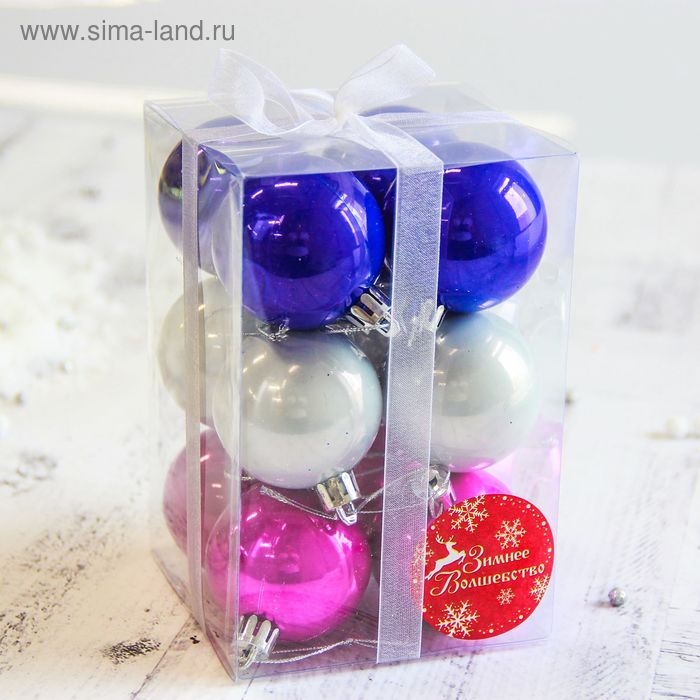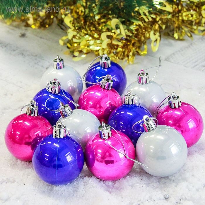 Набор шаров пластик d-5 см, 12 шт "Жемчужный глянец" микс
