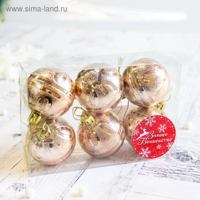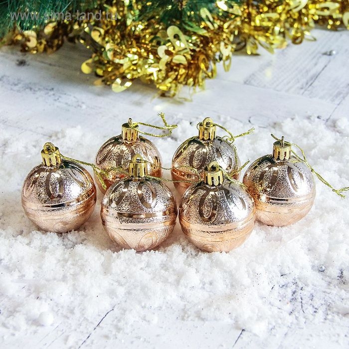 Набор шаров пластик d-5 см, 6 шт "Флёр" золото