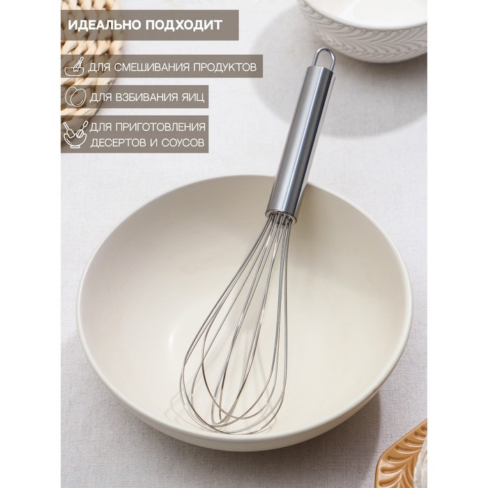 Венчик для взбивания Доляна «Помощник», 24×6 см, цвет серебристый