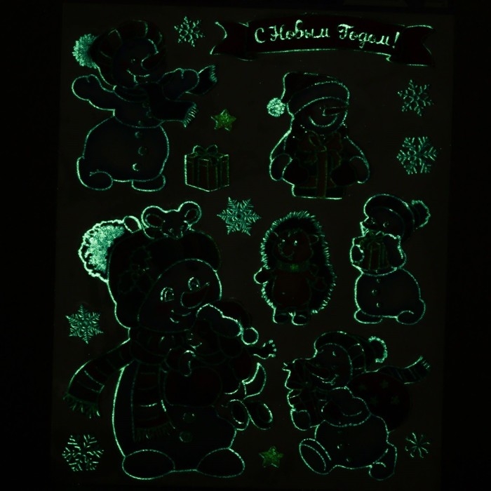 Наклейки новогодние, интерьерные со светящимся слоем «Снеговички», 21 х 29,7 см, Новый год