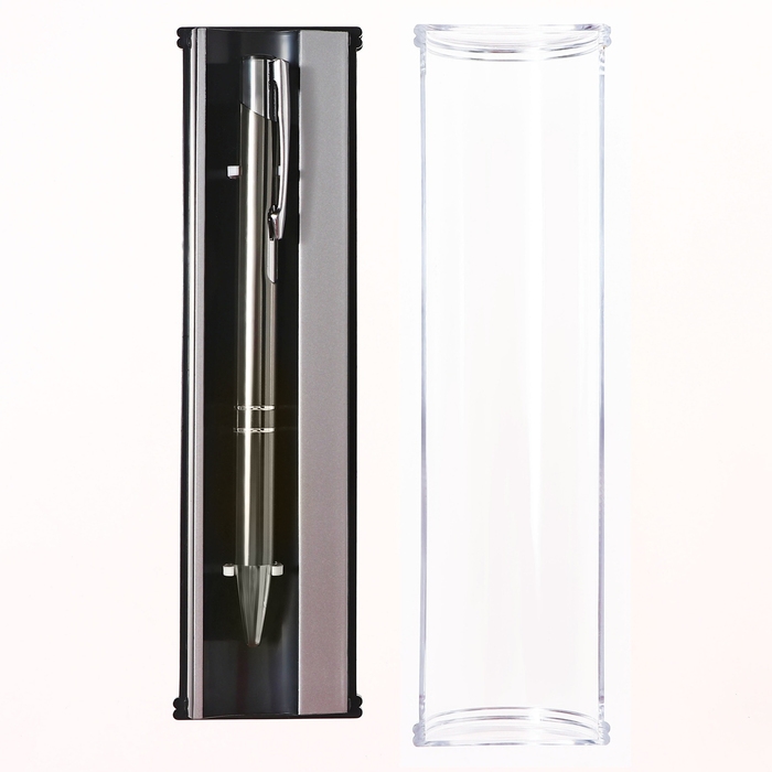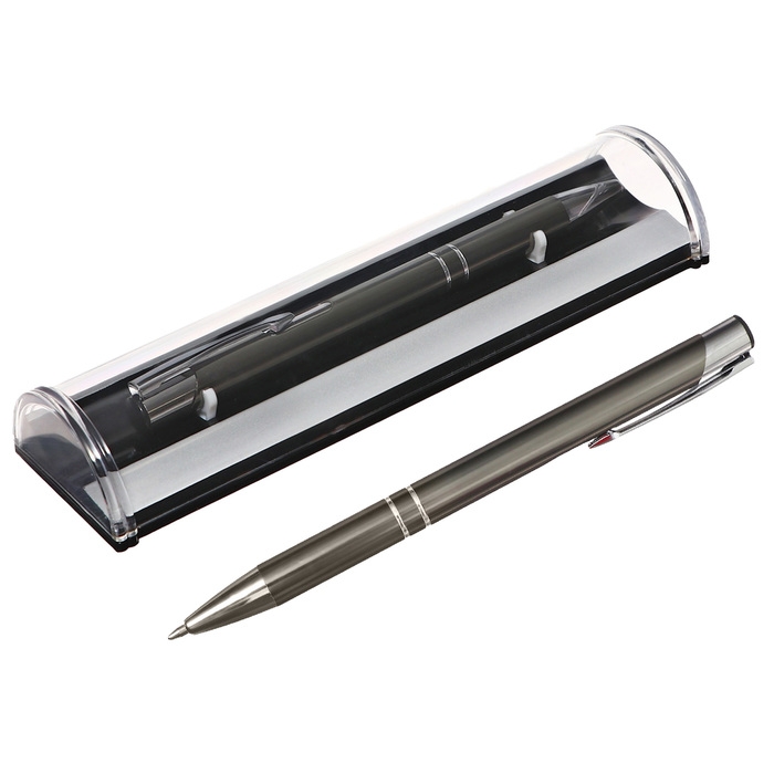 Ручка подарочная, шариковая, автоматическая "Стиль" в пластиковом футляре, NEW, серая