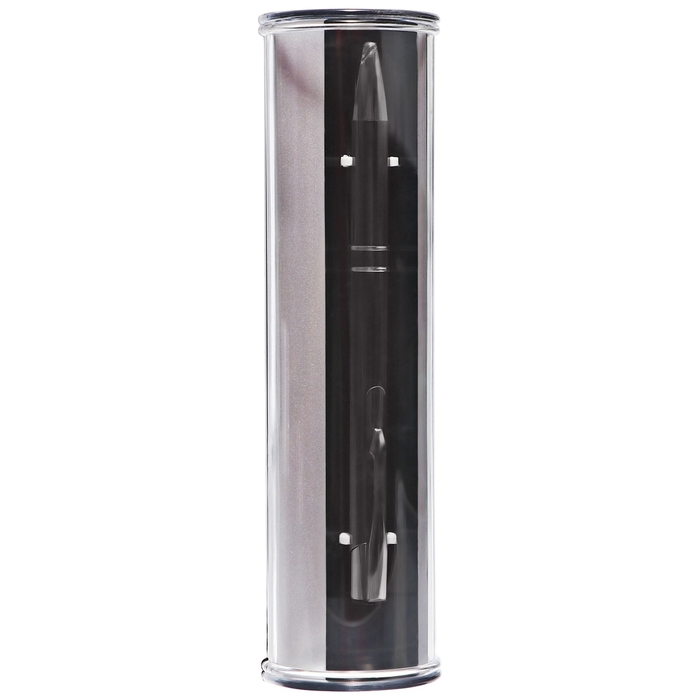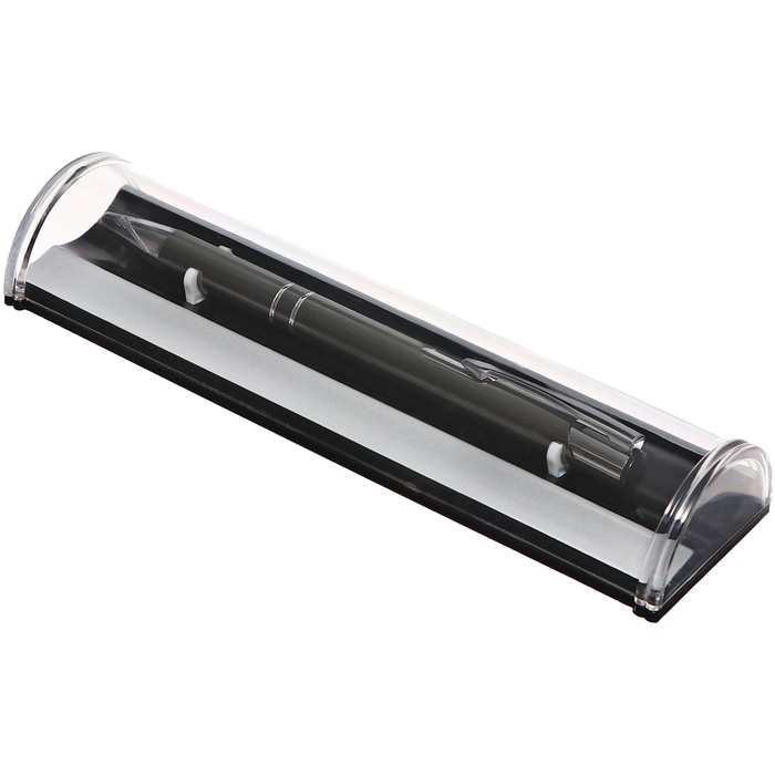 Ручка шариковая, подарочная, в пластиковом футляре, поворотная, "Бизнес", чёрная с серебристыми вставками