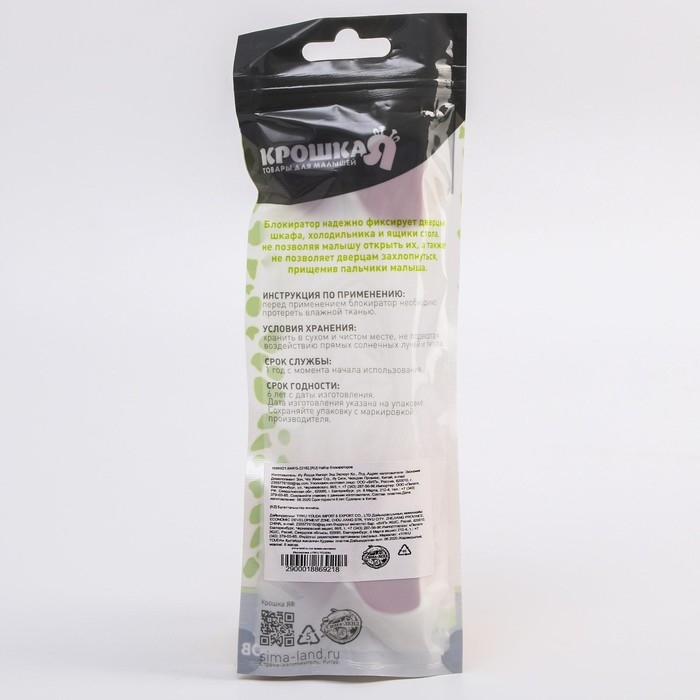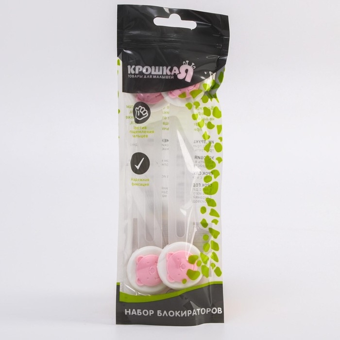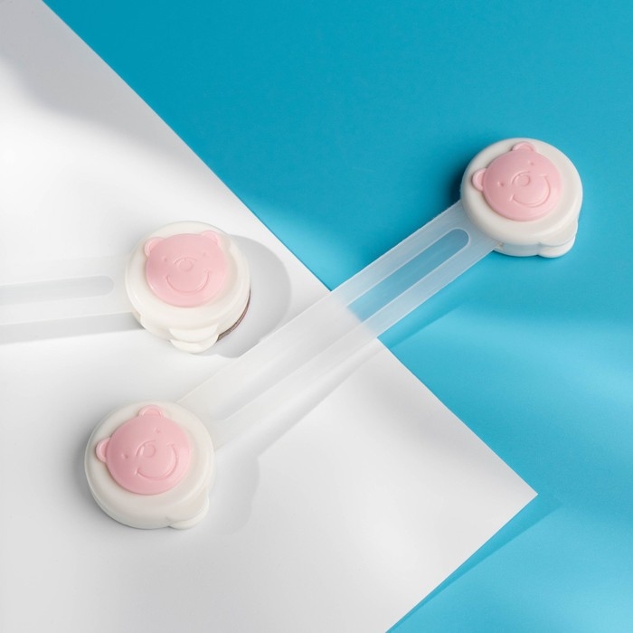Набор блокираторов для дверей и ящиков «Мишка», универсальные, гибкие, 2 шт., цвет розовый/белый, Крошка Я