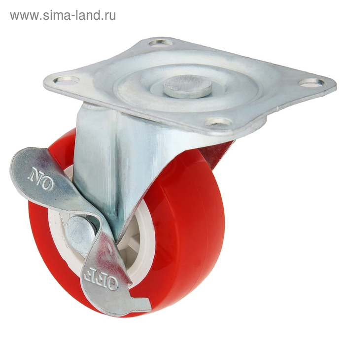 Колесо мебельное, d=50 мм, на площадке, с фиксатором, красное
