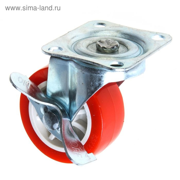 Колесо мебельное, d=65 мм, на площадке, с фиксатором, красное