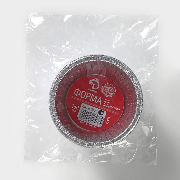 Набор форм из фольги для запекания и выпечки Доляна, 135 мл, d=8,5 см, 6 шт
