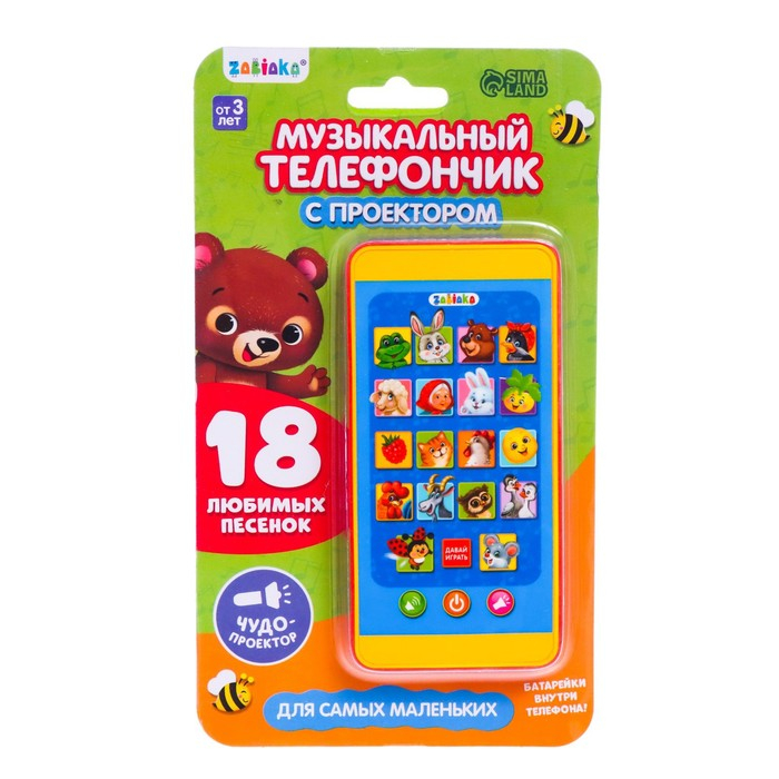 Музыкальный телефончик для самых маленьких «Забавные зверята», с проектором