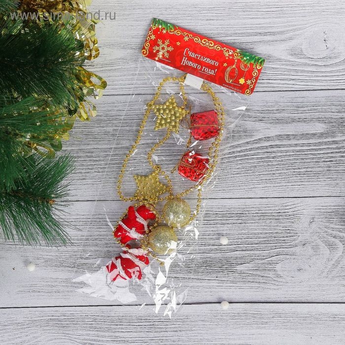 Бусы на ёлку 90 см "Звёзды, шарики, подарки" красно-золотой