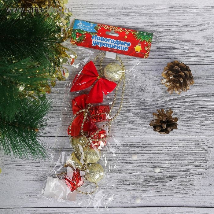 Бусы на ёлку 90 см "Банты, колокольчики, подарки" красно-золотой
