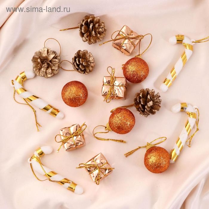 Набор украшений пластик 16 шт "Сюрприз" (4 подарка, 4 шишки, 4 шара, 4 палочки)