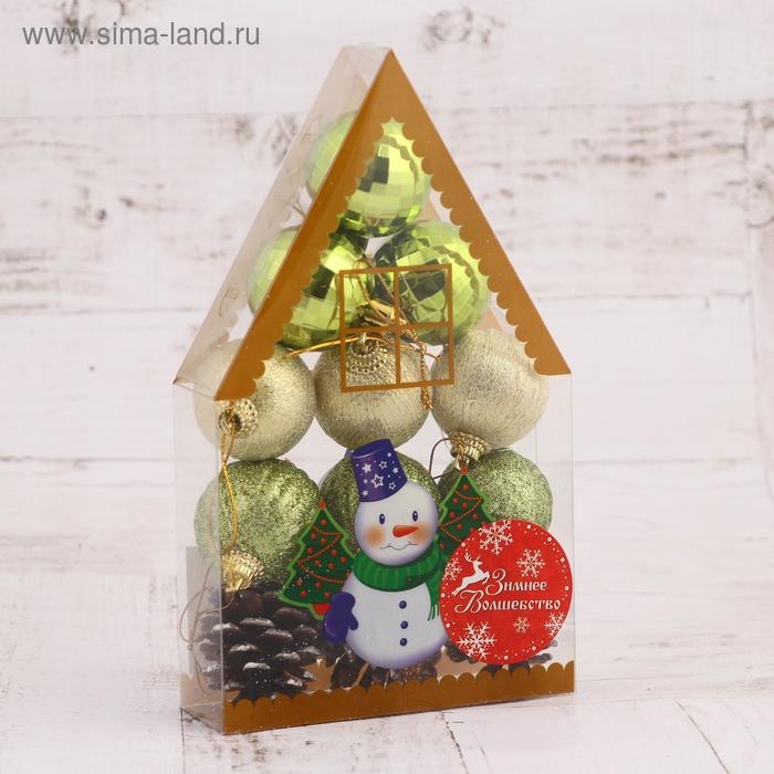 Набор украшений пластик 12 шт "Домик" (6 шаров,3 шишки, 3 подарка)