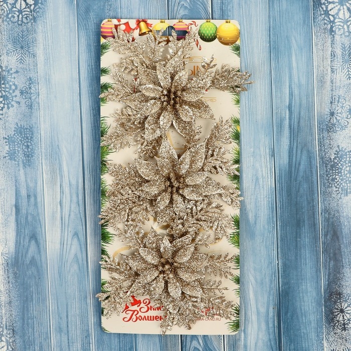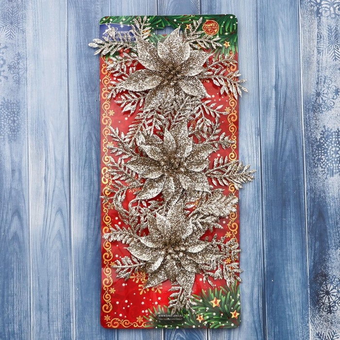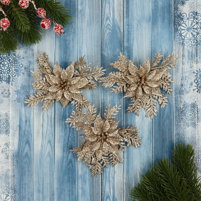Украшение ёлочное "Цветы с зауженным лепестком" (набор 3 шт) 10х10 см, золото