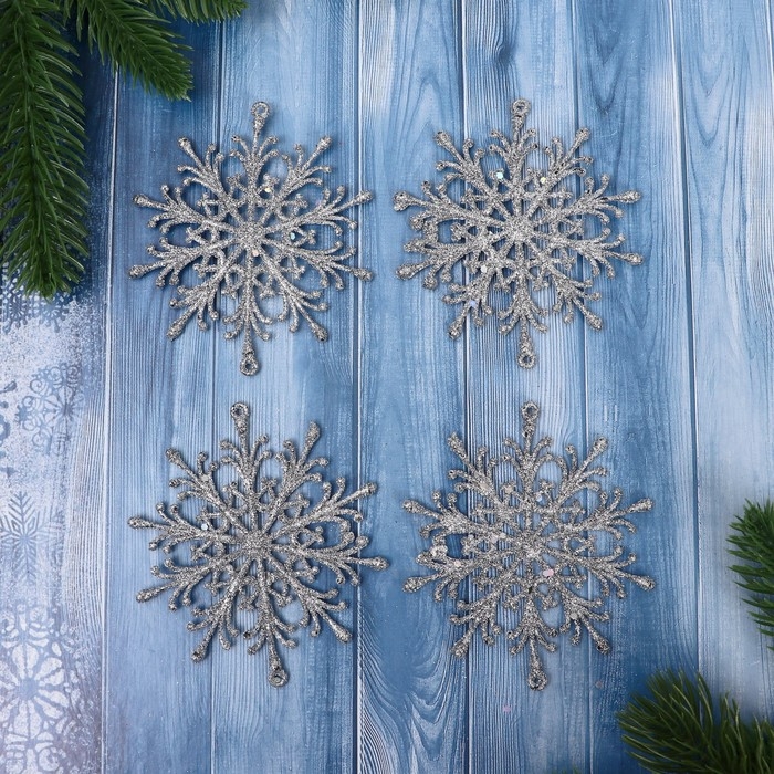 Украшение ёлочное "Снежинка" (набор 4 шт) d-9 см, микс