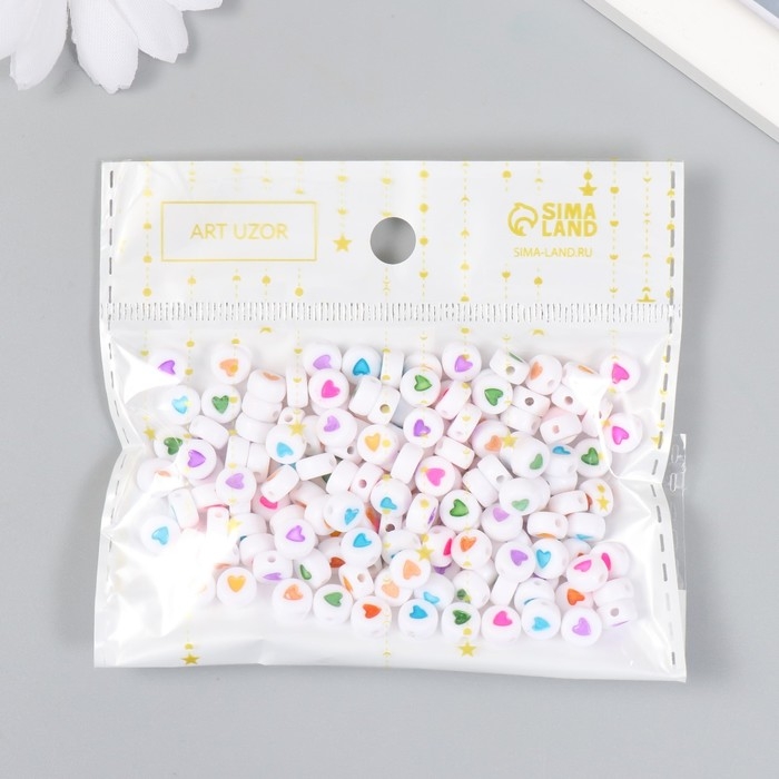 Набор бусин для рукоделия и плетения «Арт Узор. Сердечко в круге», 20 г, пластик, разноцветные, 0.7×0.7 см