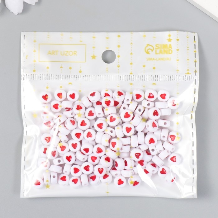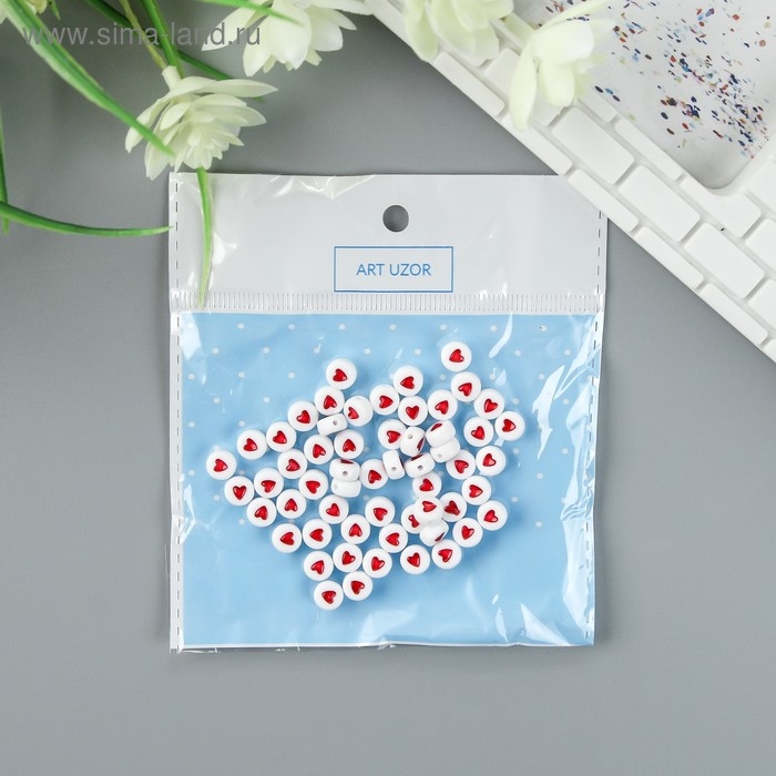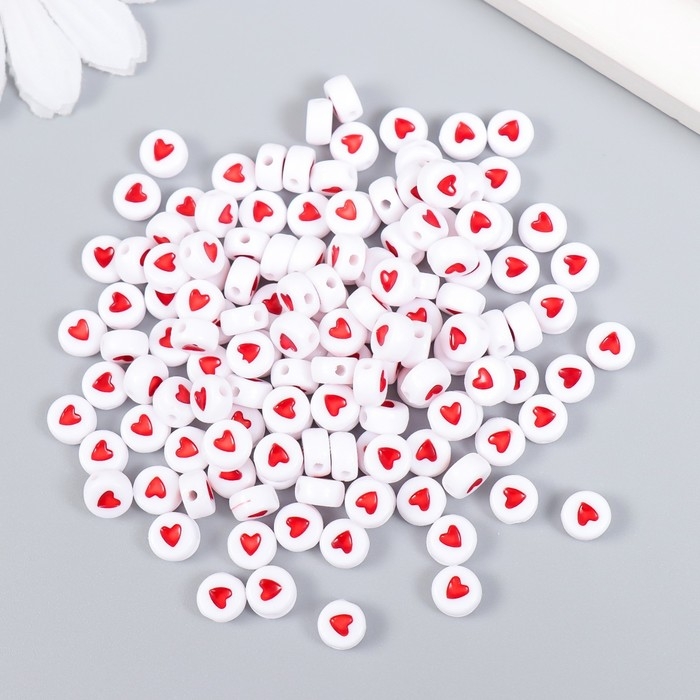 Набор бусин для рукоделия и плетения «Арт Узор. Красное сердечко в круге», 20 г, пластик, 0.7×0.7 см