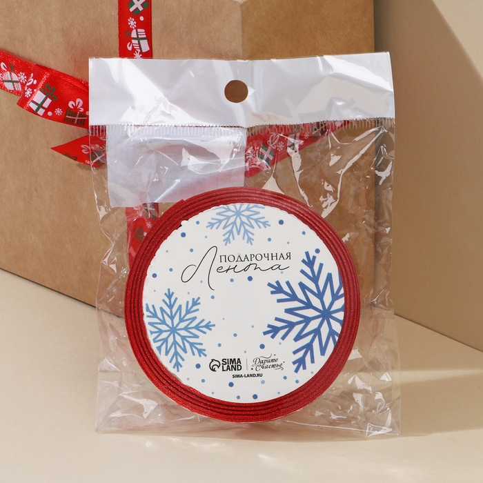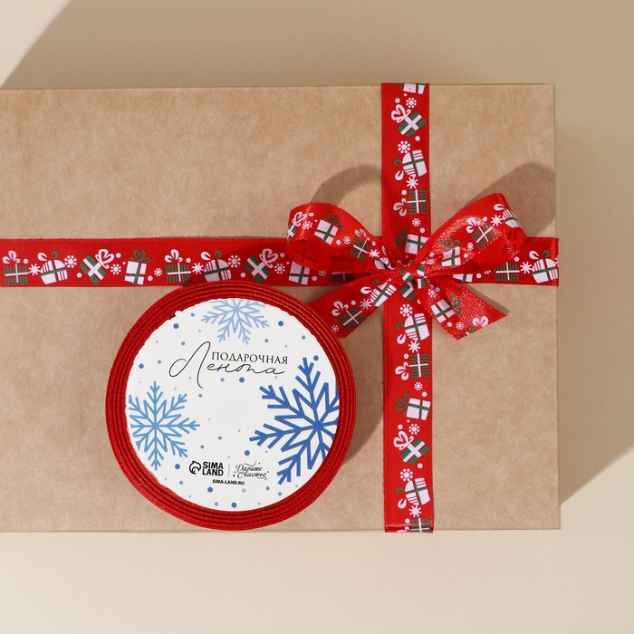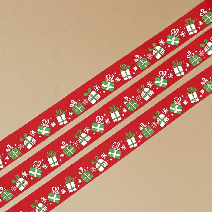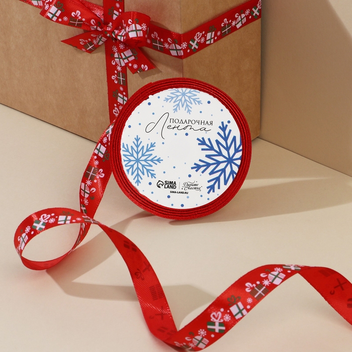 Лента атласная декоративная «Подарочки», 1,5 см × 5 м