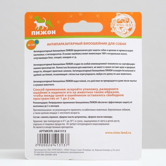 Антипаразитарный биоошейник создан по особой инновационной технологии на сертифицированном производстве. Полностью безопасен для животного, не имеет в своем составе ядов и вредных веществ, обладает приятным запахом.