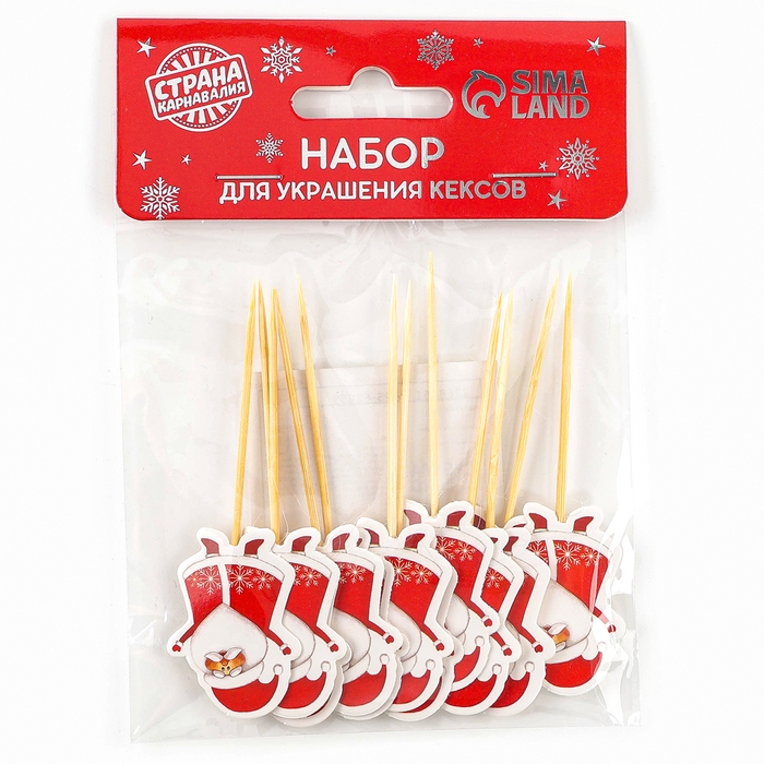 Новогодние шпажки «Дедушка Мороз», на новый год, набор 12 шт.