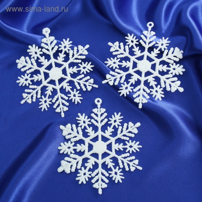 Украшение ёлочное "Снежинка" (набор 3 шт) d-9 см, белый