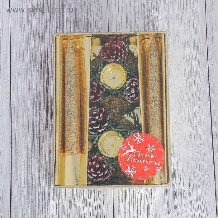Свеча новогодняя с подсвечником "Блеск" (набор 4 шт) 3,5х11х15 см, золото