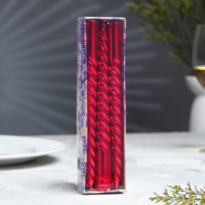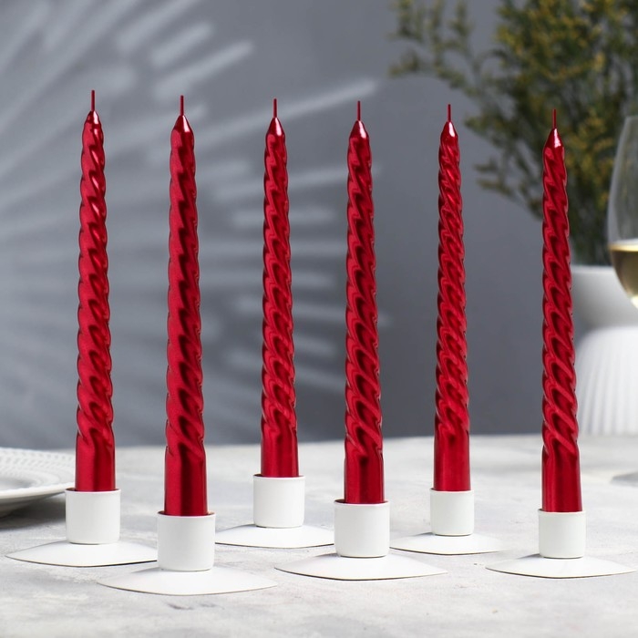 Набор Свечей витых, 1,9х 20 см, 6 штук, рубиновый металлик