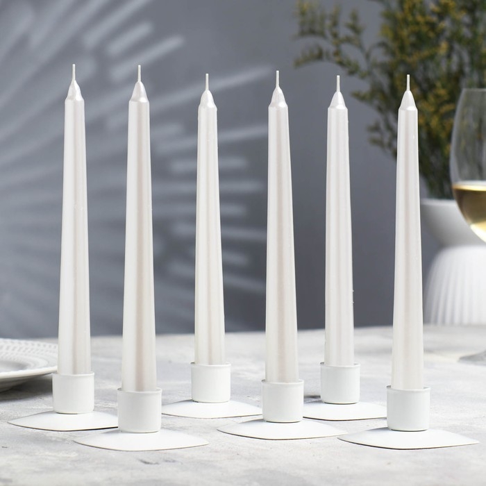 Набор Свечей античных, 1,9х 20 см, 6 штук, перламутровый металлик