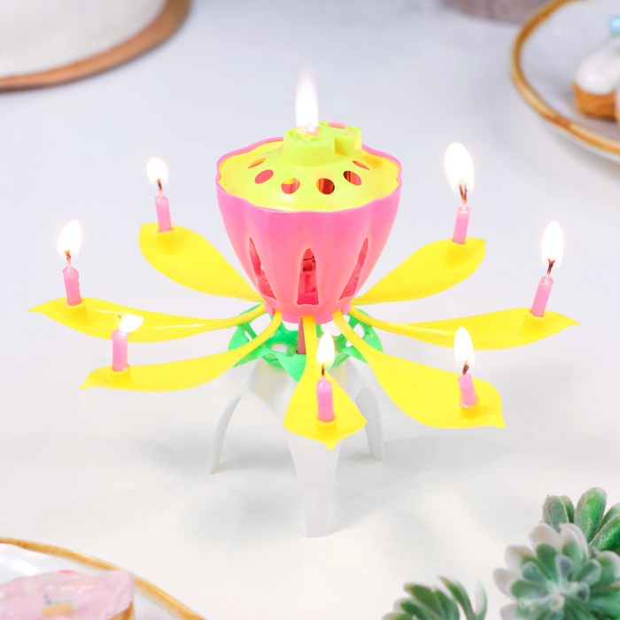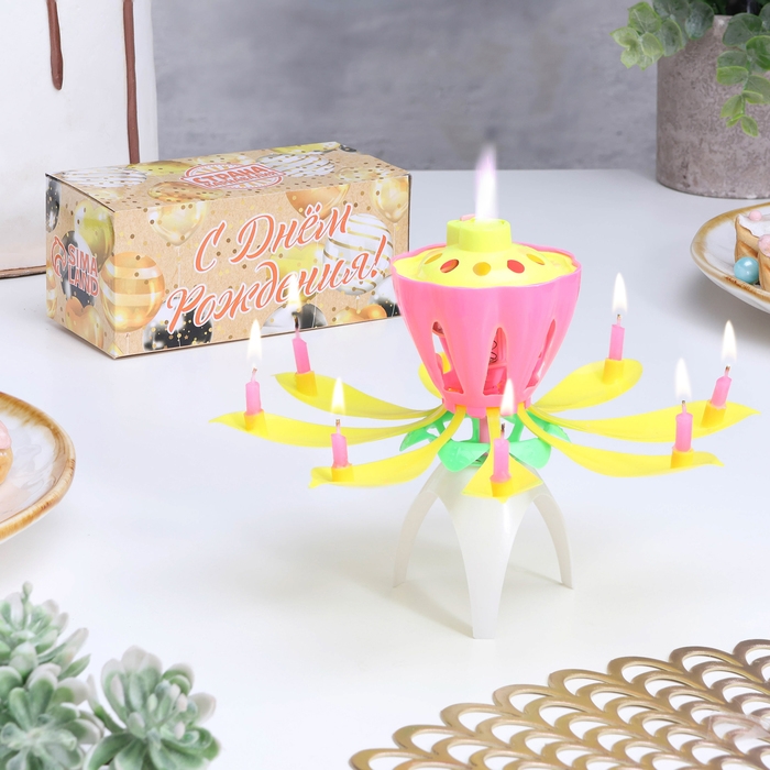 Свеча для торта музыкальная "Бутон", крутящаяся, розовая, 14,5 см