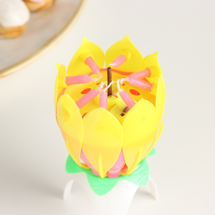 Свеча для торта музыкальная "Тюльпан", жёлтая, 12×5 см