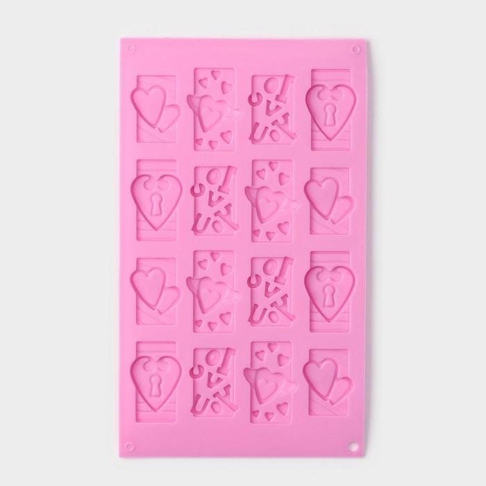 Форма для конфет и шоколада Доляна «Любовь», силикон, 28.7×17.4 см, 16 ячеек (4.7×3.8 см), МИКС