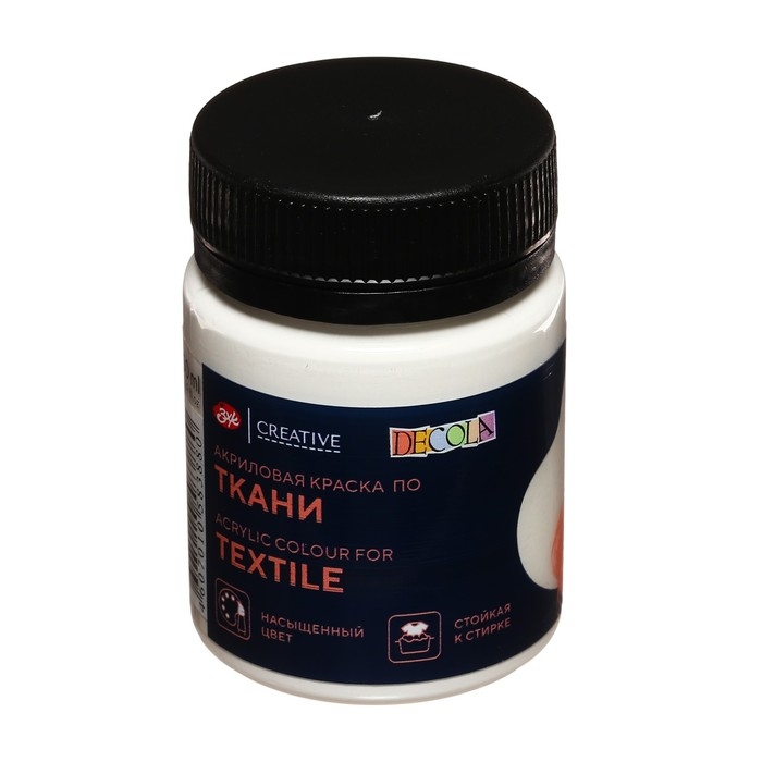 Краска по ткани, банка 100 мл, ЗХК Decola, белая 4127104, (акриловая на водной основе)