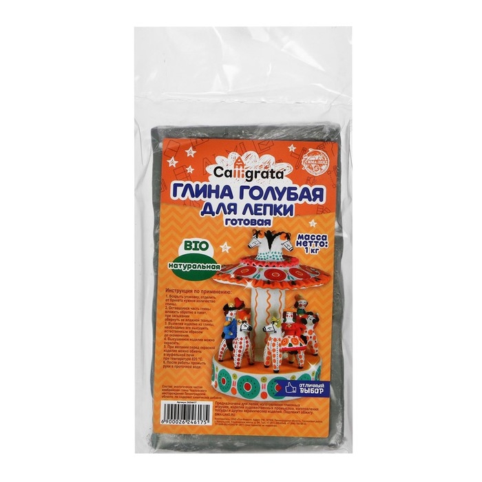 Глина для лепки натуральная голубая 1000 г, Calligrata, самоотвердевает (подходит для обжига)