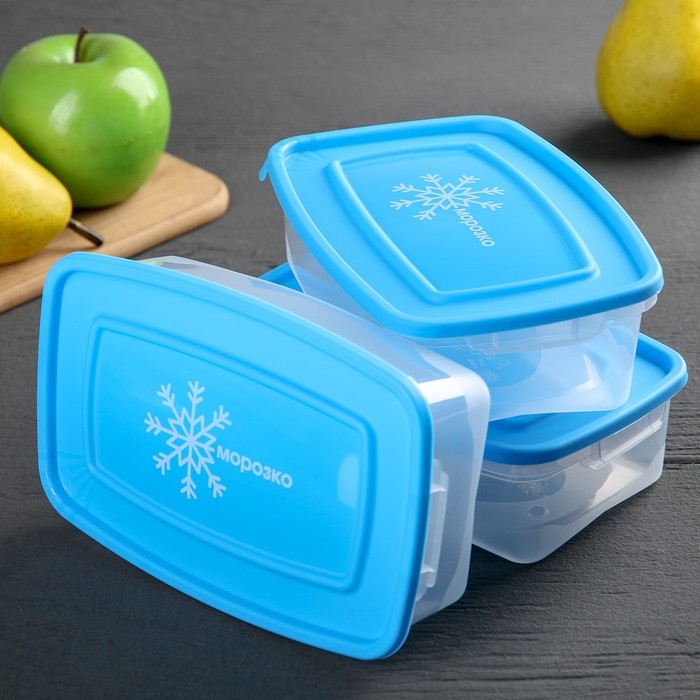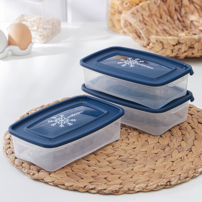 Набор контейнеров для замораживания продуктов «Морозко», 3 шт, 700 мл, цвет прозрачный, крышки МИКС