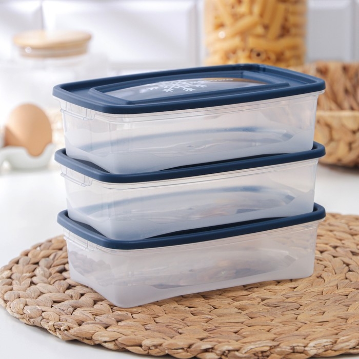 Набор контейнеров пищевых Доляна, 3 шт: 1 л, 18,5×12×7 см, прямоугольные, прозрачные, крышка зелёная
