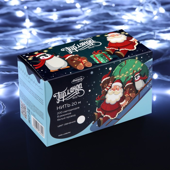 Гирлянда «Нить» 20 м, IP20, белая нить, 200 LED, свечение белое, 8 режимов, 220 В