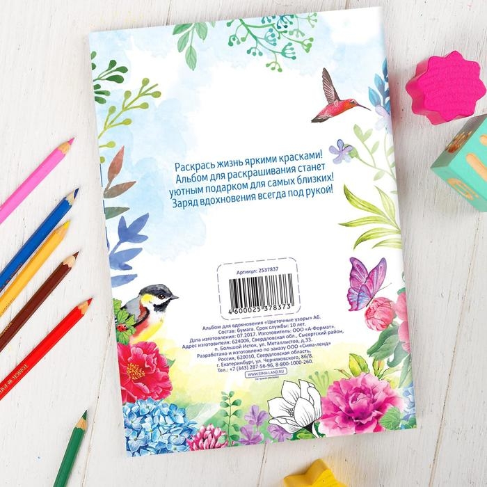 Раскраска - антистресс, альбом «Цветочные узоры» А6
