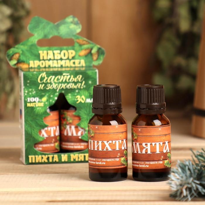 Набор эфирных масел 2 шт по 30 мл, пихта и мята "Счастья и здоровья!"