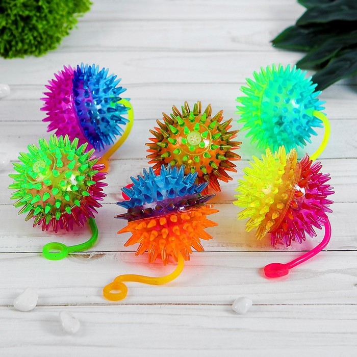 Мяч «Ёжик», световой, с пищалкой, 6,5 см, цвета МИКС