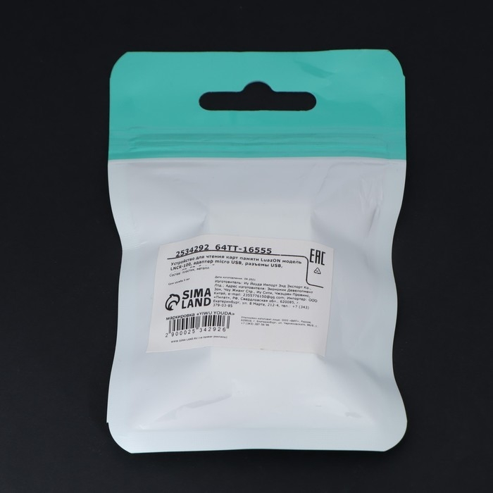 Картридер-OTG Luazon LNCR-001, подключение microUSB и USB, слоты SD microSD, черный